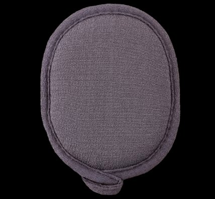 Une face en éponge de coton avec de petites bouclettes adaptée au nettoyage et au démaquillage de la peau, ou parfaite pour appliquer des soins
